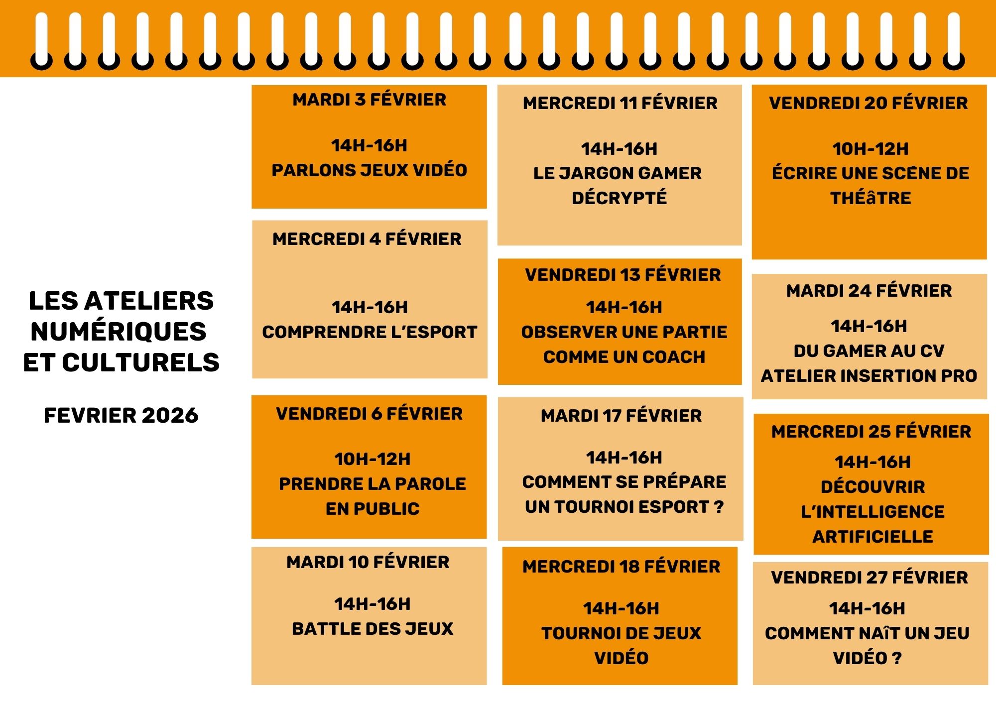 Planning des ateliers février 2026