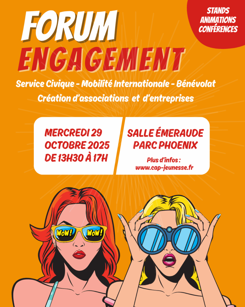 Organisé par AGIS06 Cap Jeunesse et la SDJES, cet événement se tiendra le mercredi 29 octobre 2025, de 13h30 à 17h, au Parc Phoenix – Salle Émeraude.